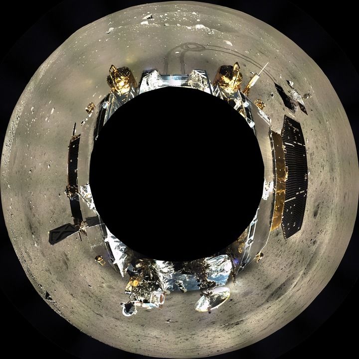 這是嫦娥三號地形地貌相機拍攝的著陸器周邊360°范圍的全景鑲嵌影像圖,采用方位投影方式表達(dá)(2013年12月17日至12月18日攝)。新華社發(fā)