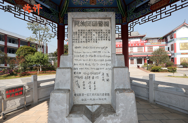 普洱民族團(tuán)結(jié)誓詞碑被譽(yù)為“新中國(guó)民族團(tuán)結(jié)第一碑”。1950年,云南普洱專(zhuān)區(qū)各族代表應(yīng)邀到北京參加新中國(guó)成立一周年慶?;顒?dòng),受到毛澤東等黨和國(guó)家領(lǐng)導(dǎo)人親切接見(jiàn)。1951年元旦,普洱專(zhuān)區(qū)各族群眾舉行盟誓大會(huì),以少數(shù)民族的風(fēng)俗習(xí)慣立下誓詞碑。盟誓立碑后,各民族兄弟姐妹用實(shí)際行動(dòng)踐行“一心一德跟黨走”的錚錚誓言,推動(dòng)邊疆地區(qū)經(jīng)濟(jì)社會(huì)發(fā)展取得了歷史性成就,書(shū)寫(xiě)了民族團(tuán)結(jié)進(jìn)步生動(dòng)篇章。