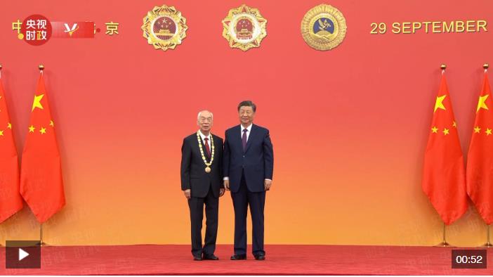 中華人民共和國國家勛章和國家榮譽(yù)稱號(hào)頒授儀式9月29日上午10時(shí)在人民大會(huì)堂隆重舉行。中共中央總書記、國家主席、中央軍委主席習(xí)近平向“體育工作杰出貢獻(xiàn)者”國家榮譽(yù)稱號(hào)獲得者張燮林頒授獎(jiǎng)?wù)隆?/p>