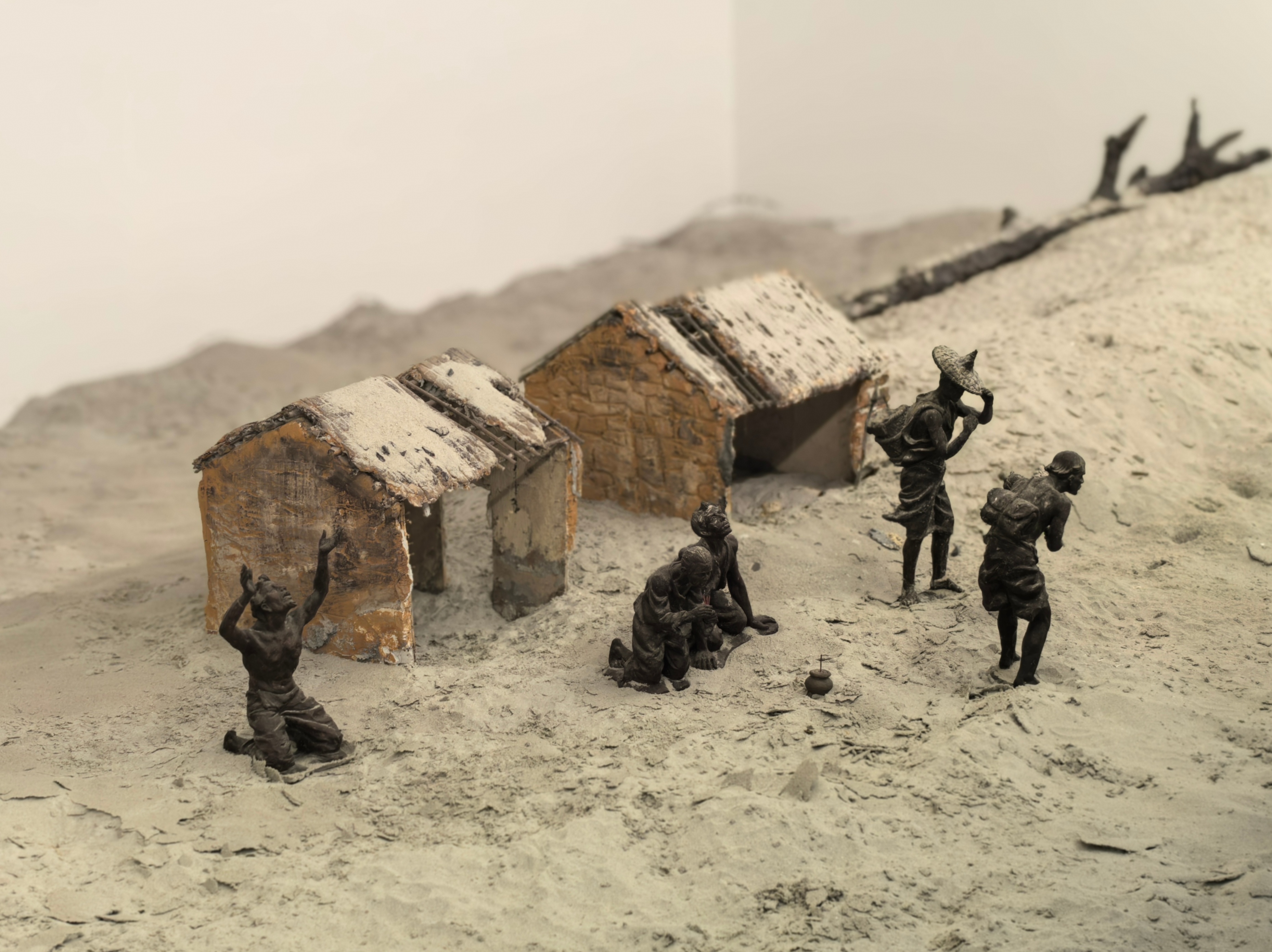 谷文昌紀念館里展示的當(dāng)年東山人民飽受風(fēng)沙災(zāi)害之苦的情景。(總臺央廣記者潘毅拍攝)