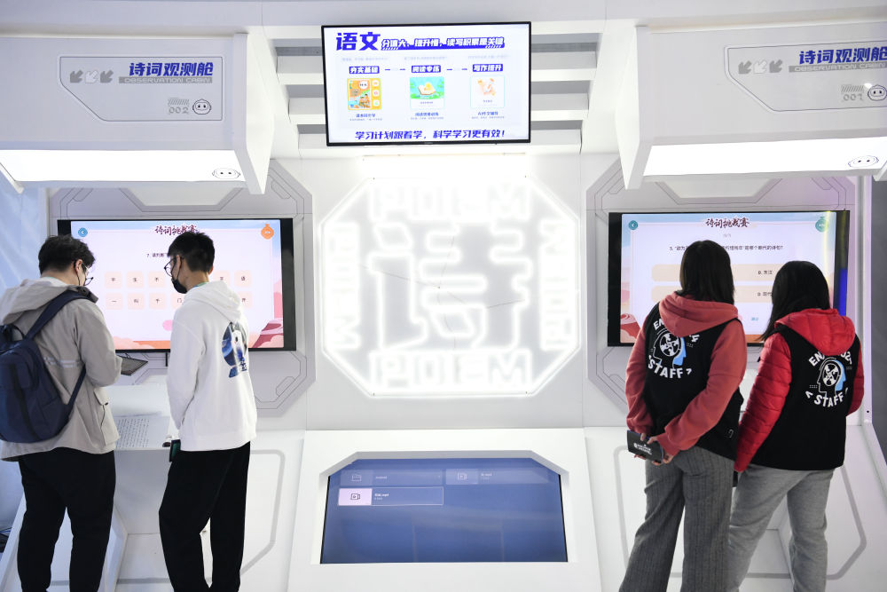 2022年11月17日,觀眾在于安徽合肥舉辦的第五屆世界聲博會上體驗教育領(lǐng)域智能產(chǎn)品。