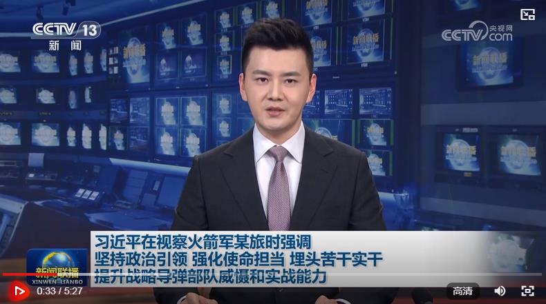 中共中央總書記、國家主席、中央軍委主席習近平17日到火箭軍某旅視察,強調(diào)要深入貫徹新時代強軍思想,貫徹新時代軍事戰(zhàn)略方針,把握戰(zhàn)略導(dǎo)彈部隊建設(shè)和作戰(zhàn)運用特點規(guī)律,堅持政治引領(lǐng),強化使命擔當,埋頭苦干實干,推進部隊建設(shè)高質(zhì)量發(fā)展,提升戰(zhàn)略威懾和實戰(zhàn)能力,堅決完成黨和人民賦予的各項任務(wù)。