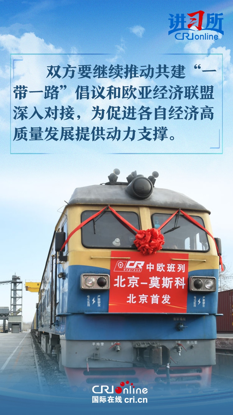 習近平主席在同俄羅斯總統(tǒng)普京會晤時指出,中俄世代友好的深厚情誼不會變,濟世為民的大國擔當不會變。雙方要繼續(xù)推動共建“一帶一路”倡議和歐亞經濟聯(lián)盟深入對接,為促進各自經濟高質量發(fā)展提供動力支撐。