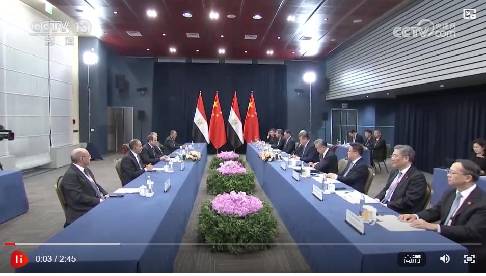 習(xí)近平祝賀并歡迎埃及首次作為正式成員參加金磚國家領(lǐng)導(dǎo)人會晤。習(xí)近平指出,今年是“中?;锇槟辍焙蛢蓢⑷鎽?zhàn)略伙伴關(guān)系10周年。中方堅定支持埃及維護(hù)國家主權(quán)、安全、發(fā)展利益,愿同埃方做守望相助的真誠朋友、攜手發(fā)展的親密伙伴。雙方要繼續(xù)堅定相互支持,鞏固政治互信,深化務(wù)實(shí)合作,高質(zhì)量共建“一帶一路”,密切人文交流,推動雙邊關(guān)系朝著構(gòu)建面向新時代的中埃命運(yùn)共同體目標(biāo)持續(xù)邁進(jìn)。中方也愿同埃方加強(qiáng)協(xié)調(diào),推動“大金磚合作”行穩(wěn)致遠(yuǎn),進(jìn)一步提升全球南方影響力和發(fā)言權(quán),維護(hù)發(fā)展中國家共同利益。