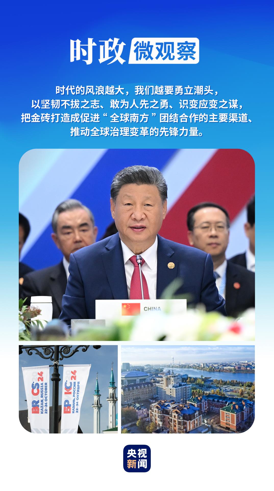 喀山之行的一系列密集活動中,習(xí)近平主席深刻闡釋“精神力量”與“挺膺擔(dān)當(dāng)”,為開創(chuàng)“大金磚合作”高質(zhì)量發(fā)展新局面引領(lǐng)航向?!稌r政微觀察》為你解讀。
