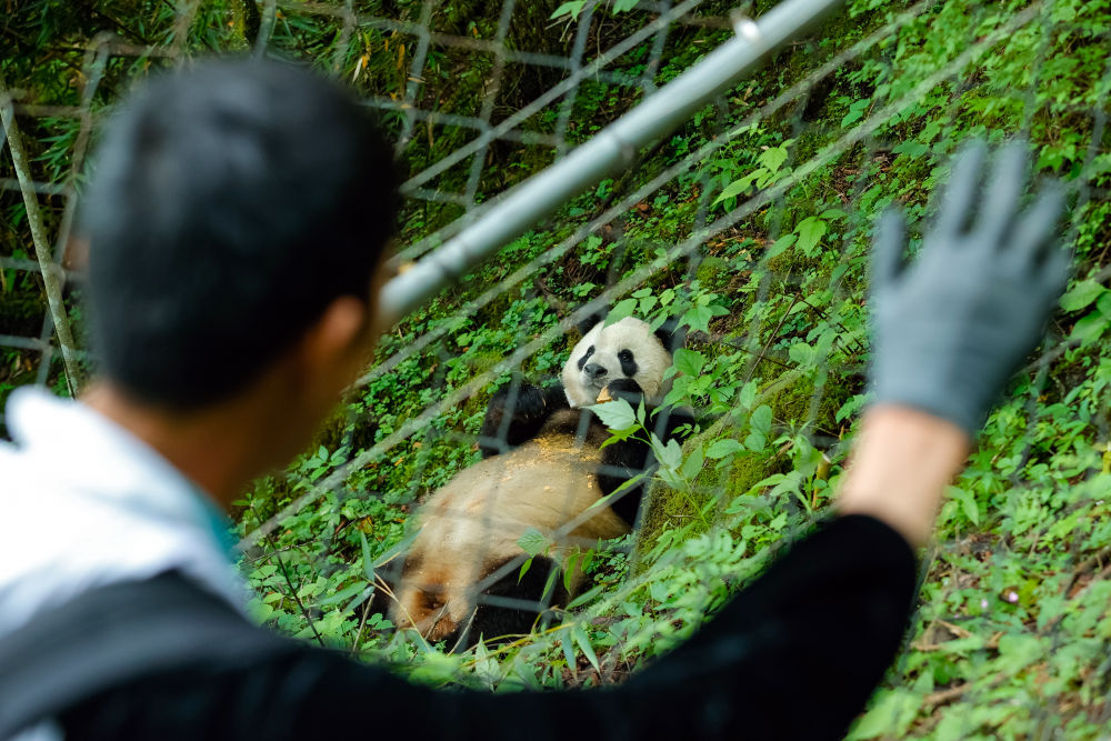 2024年6月24日,在位于大熊貓國家公園臥龍片區(qū)內(nèi)天臺(tái)山的大熊貓第二階段野化培訓(xùn)場外,工作人員給母熊貓“賢賢”投喂完食物后揮手向其告別。近年來,我國通過大力實(shí)施天然林保護(hù)、野生動(dòng)植物保護(hù)和大熊貓國家公園建設(shè)等,保護(hù)大熊貓及其棲息地,成效顯著。大熊貓野外種群總量已從20世紀(jì)80年代的約1100只增長到近1900只。