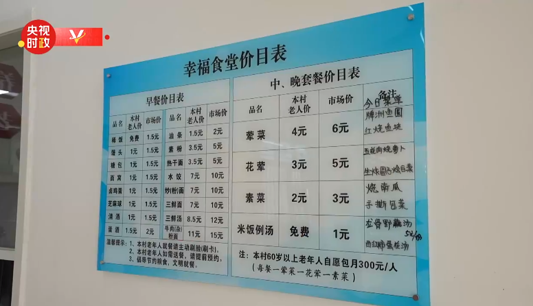 △ 養(yǎng)老服務(wù)驛站幸福食堂價目表 視頻截圖