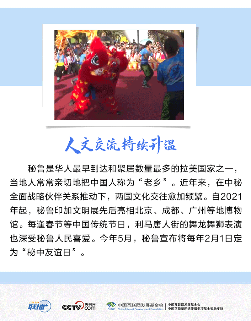 聯(lián)播+應(yīng)秘魯共和國(guó)總統(tǒng)博魯阿爾特邀請(qǐng),習(xí)近平主席將對(duì)秘魯進(jìn)行國(guó)事訪問(wèn)。不到半年的時(shí)間,中秘領(lǐng)導(dǎo)人實(shí)現(xiàn)互訪,顯示了雙方高水平的政治互信。
