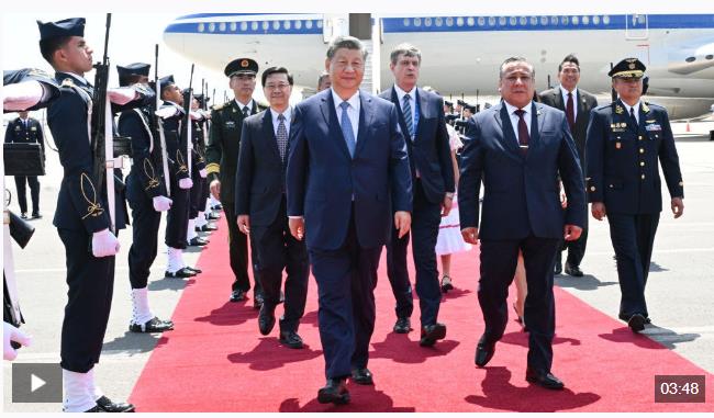 習(xí)近平發(fā)表機(jī)場(chǎng)書面講話,向秘魯政府和秘魯人民致以誠(chéng)摯問(wèn)候和良好祝愿。
