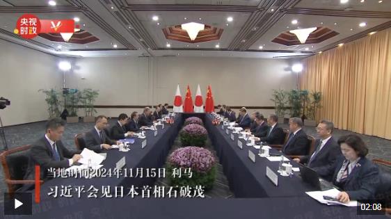 當?shù)貢r間11月15日,國家主席習近平在利馬出席亞太經(jīng)合組織領(lǐng)導人非正式會議期間會見日本首相石破茂。