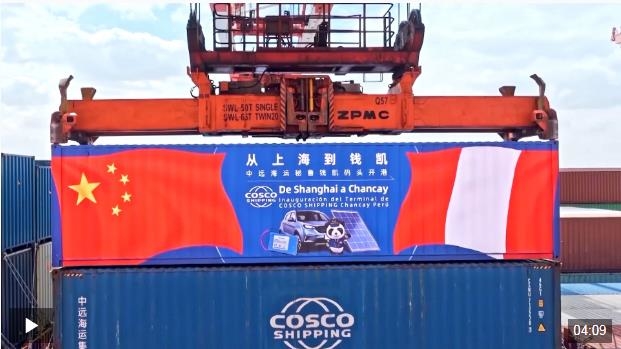 “從錢凱到上海,我們正在見證的不僅僅是共建‘一帶一路’倡議在秘魯?shù)纳_花,也是一條新時代亞拉陸海新通道的誕生?!?/p>