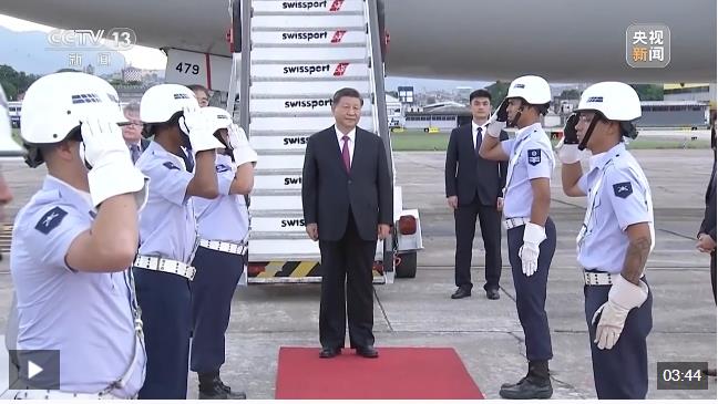 當(dāng)?shù)貢r間11月17日下午,習(xí)主席乘專機抵達(dá)里約熱內(nèi)盧加里昂空軍基地。巴西政府高級官員熱情迎接。巴西空軍號手吹號致敬,禮兵分列紅毯兩側(cè)。