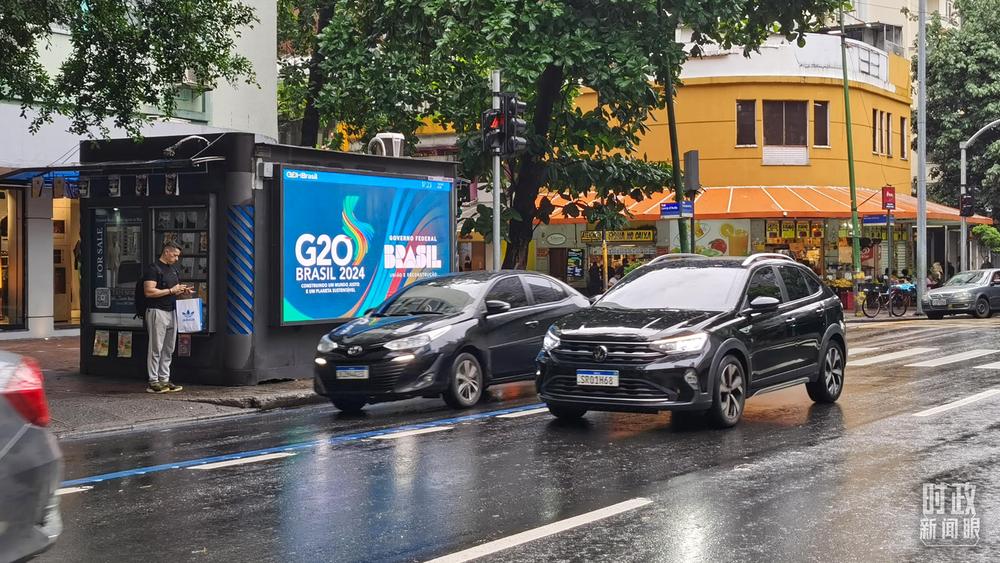 巴西里約熱內(nèi)盧街頭的G20標(biāo)識。(總臺央視記者曹亞星拍攝)