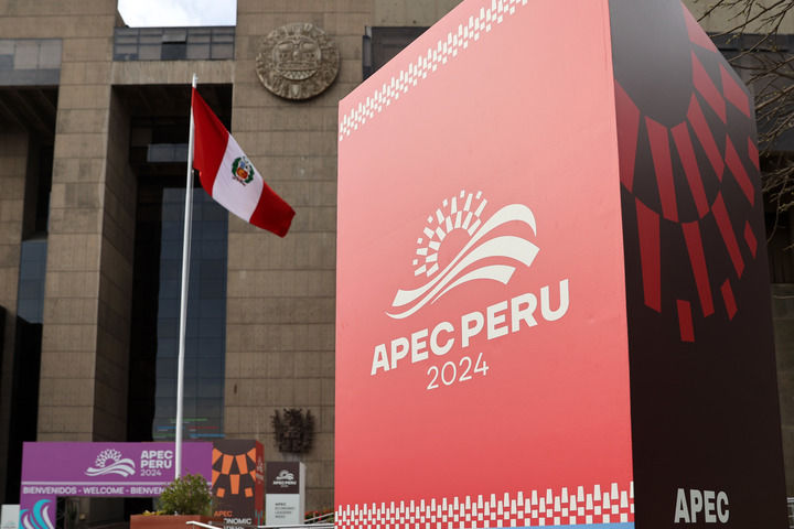 這是2024年11月10日在秘魯首都利馬拍攝的2024年亞太經(jīng)合組織會(huì)議標(biāo)識。新華社記者 李木子 攝