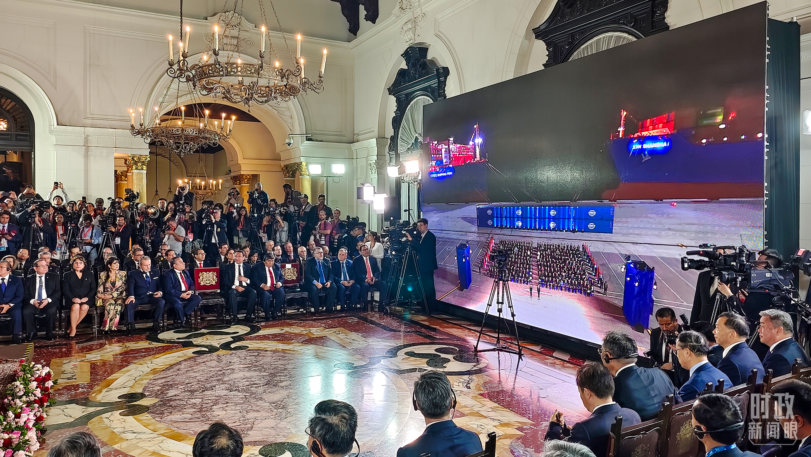 一場(chǎng)儀式,指的是秘魯錢凱港開港儀式。錢凱港是中秘共建“一帶一路”重要項(xiàng)目,也是南美首個(gè)智慧港口和綠色港口。此訪期間,兩國(guó)元首以視頻方式共同出席開港儀式,下達(dá)“開港”指令。隨著錢凱港的開港,中秘間單程海運(yùn)時(shí)間將縮短至23天。這個(gè)新港口也見證著一條新時(shí)代亞拉陸海新通道的誕生。