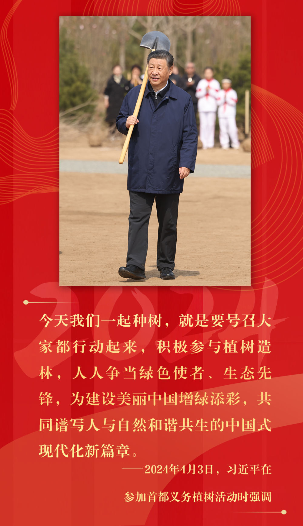 2024年,習(xí)近平總書(shū)記在參加義務(wù)植樹(shù)、基層考察調(diào)研、聽(tīng)取工作匯報(bào)等場(chǎng)合,多次作出重要指示,持續(xù)推動(dòng)生態(tài)文明建設(shè)。保護(hù)綠水青山,建設(shè)美麗中國(guó),是總書(shū)記心間始終的牽掛。