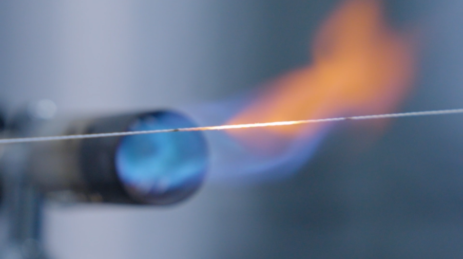 “這根絲超級耐高溫,1200℃的火焰也燒不斷它。它比頭發(fā)絲還細,直徑只有7到12微米,卻能提起5公斤重物?!苯榻B,這根絲可以做成布、繩子、套管、織帶等,可應用于石油化工、能源電力、國防安全等多個領域。10年研發(fā)期間,工作人員做了無數(shù)次試驗,打了幾萬個樣品,才讓它硬核出圈,填補了國內(nèi)高性能纖維材料的空白。