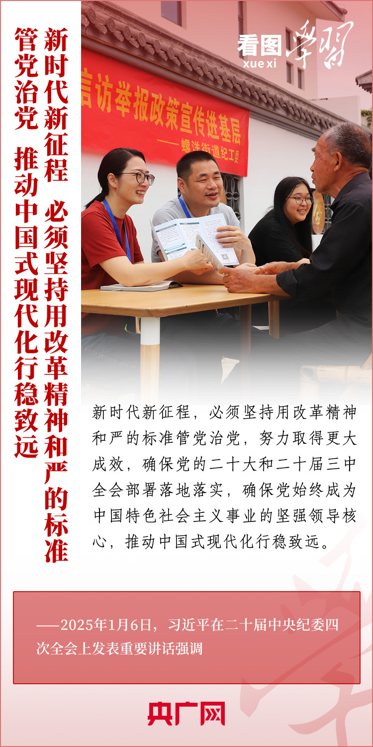 1月6日,習(xí)近平總書(shū)記在二十屆中央紀(jì)委四次全會(huì)上發(fā)表重要講話(huà),充分肯定過(guò)去一年全面從嚴(yán)治黨取得的新進(jìn)展、新成效,深刻分析當(dāng)前反腐敗斗爭(zhēng)形勢(shì),對(duì)堅(jiān)決打好反腐敗斗爭(zhēng)攻堅(jiān)戰(zhàn)、持久戰(zhàn)、總體戰(zhàn)提出明確要求。總書(shū)記強(qiáng)調(diào),新時(shí)代新征程,必須堅(jiān)持用改革精神和嚴(yán)的標(biāo)準(zhǔn)管黨治黨,努力取得更大成效,確保黨的二十大和二十屆三中全會(huì)部署落地落實(shí),確保黨始終成為中國(guó)特色社會(huì)主義事業(yè)的堅(jiān)強(qiáng)領(lǐng)導(dǎo)核心,推動(dòng)中國(guó)式現(xiàn)代化行穩(wěn)致遠(yuǎn)。一起來(lái)學(xué)習(xí)!
