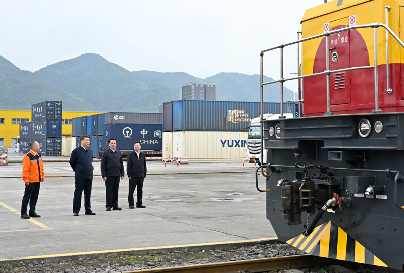 2024年4月22日,習(xí)近平總書記在重慶國(guó)際物流樞紐園區(qū)重慶鐵路集裝箱中心站考察。