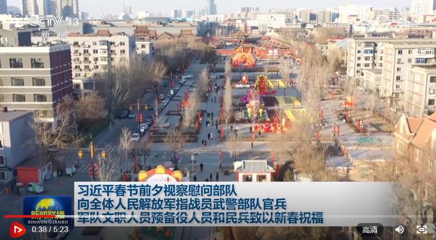 在中華民族傳統(tǒng)節(jié)日春節(jié)來(lái)臨之際,中共中央總書(shū)記、國(guó)家主席、中央軍委主席習(xí)近平24日到北部戰(zhàn)區(qū)機(jī)關(guān)視察慰問(wèn),通過(guò)視頻看望基層官兵,檢查部隊(duì)?wèi)?zhàn)備值班和執(zhí)行任務(wù)情況,代表黨中央和中央軍委,向全體人民解放軍指戰(zhàn)員、武警部隊(duì)官兵、軍隊(duì)文職人員、預(yù)備役人員和民兵致以誠(chéng)摯問(wèn)候和新春祝福。
