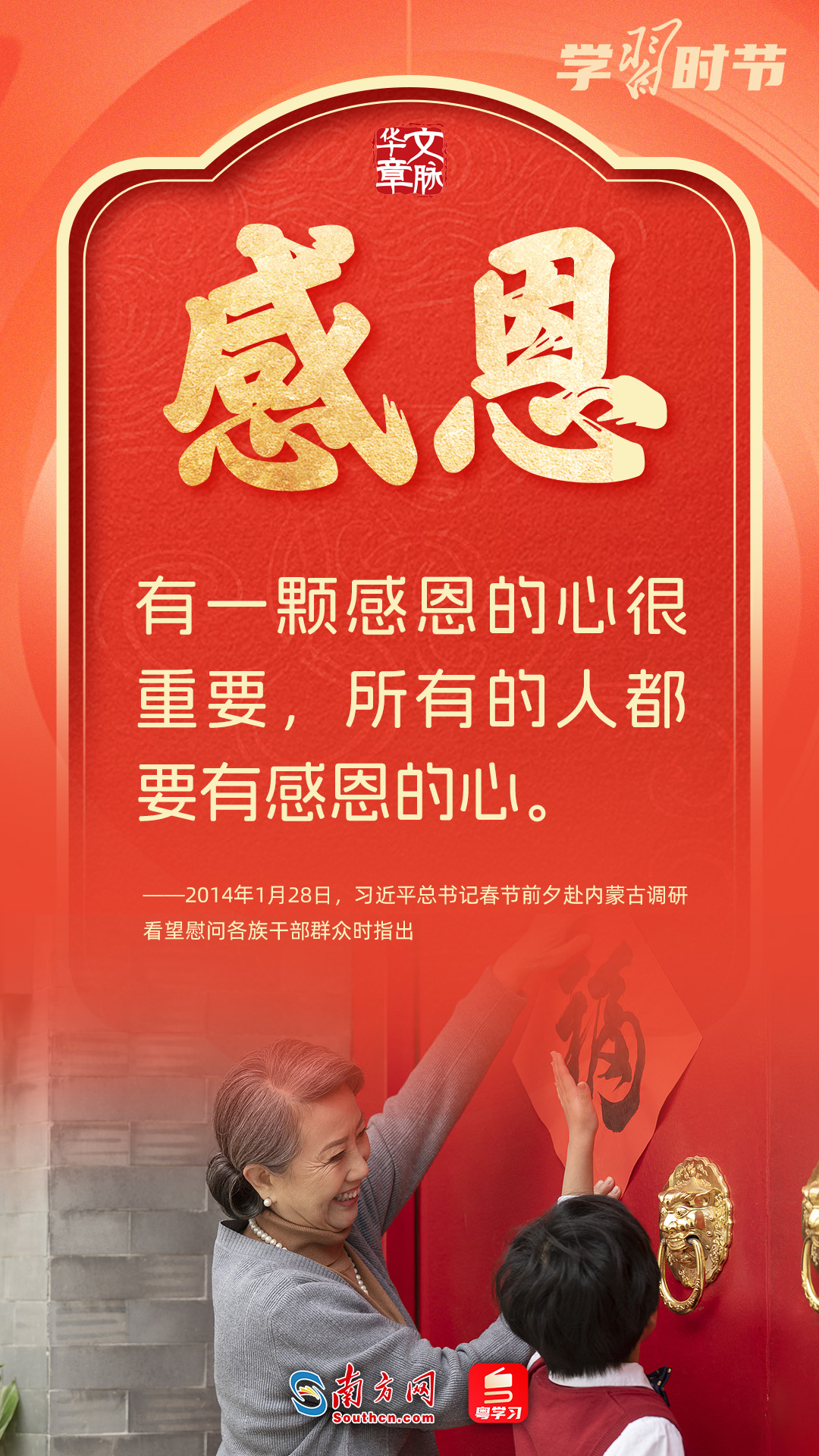 習(xí)近平總書記強調(diào),要把優(yōu)秀傳統(tǒng)文化的精神標(biāo)識提煉出來、展示出來,把優(yōu)秀傳統(tǒng)文化中具有當(dāng)代價值、世界意義的文化精髓提煉出來、展示出來。在這新春佳節(jié)里,讓我們重溫總書記的殷切寄語,感悟春節(jié)中蘊含的中華民族“精神密碼”。