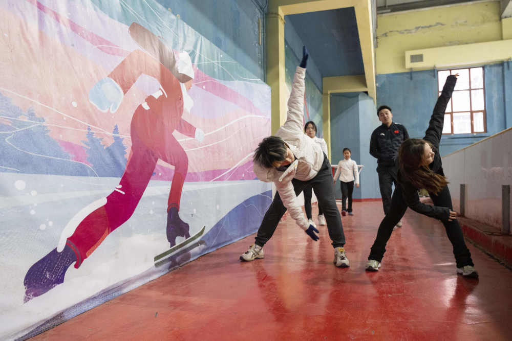 2023年3月14日,一名中學(xué)體育老師在河北張家口冰之夢滑冰場指導(dǎo)學(xué)生。在張家口這座“冬奧之城”,市民百姓參加冰雪運動已經(jīng)蔚然成風,“全季全體育”理念發(fā)展成為城市新名片。