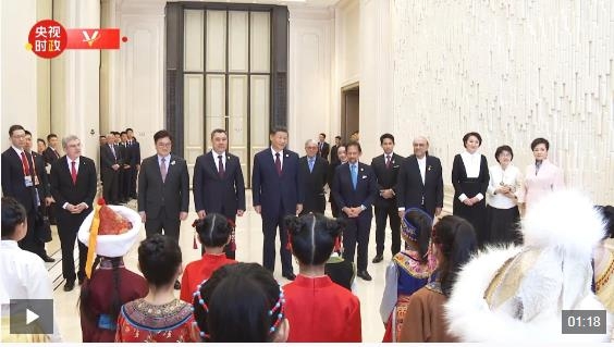 歡迎宴會(huì)開始前,40名身著中外民族服裝的少年兒童唱起優(yōu)美的黑龍江民歌《烏蘇里船歌》,熱烈歡迎國(guó)際貴賓。