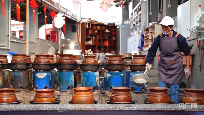 制作盬子雞的盬子,來自當(dāng)?shù)厥〖?jí)非物質(zhì)文化遺產(chǎn)代表性傳承人母先才的陶藝館。2014年,在政府的幫扶下,母先才依托傳統(tǒng)技藝開設(shè)了陶藝館?,F(xiàn)在,他不僅把原來的土窯改成了更加環(huán)保的電窯,還把工坊變?yōu)榧铺?、研學(xué)、餐飲為一體的陶藝館,受到游客歡迎。