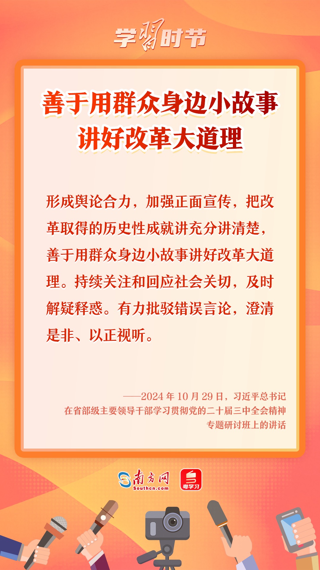 新時(shí)代新征程,世界百年未有之大變局加速演進(jìn),中華民族偉大復(fù)興進(jìn)入關(guān)鍵時(shí)期,戰(zhàn)略機(jī)遇和風(fēng)險(xiǎn)挑戰(zhàn)并存,新聞輿論工作的重要性日益突出,復(fù)雜性與日俱增。在習(xí)近平總書記發(fā)表“2·19”重要講話九周年之際,讓我們重溫習(xí)近平總書記對新聞輿論工作的重要論述和重要指示,汲取不斷創(chuàng)新求變、講好中國故事的原動力。