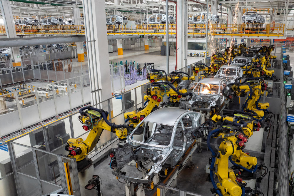 這是2024年3月21日在比亞迪長(zhǎng)沙雨花工廠拍攝的自動(dòng)化生產(chǎn)線。
