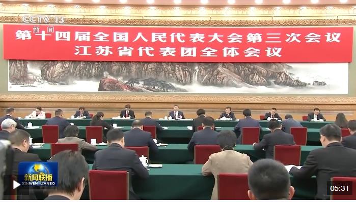 3月5日,十四屆全國人大三次會(huì)議開幕。當(dāng)天下午,習(xí)近平總書記來到他所在的江蘇代表團(tuán)參加審議。