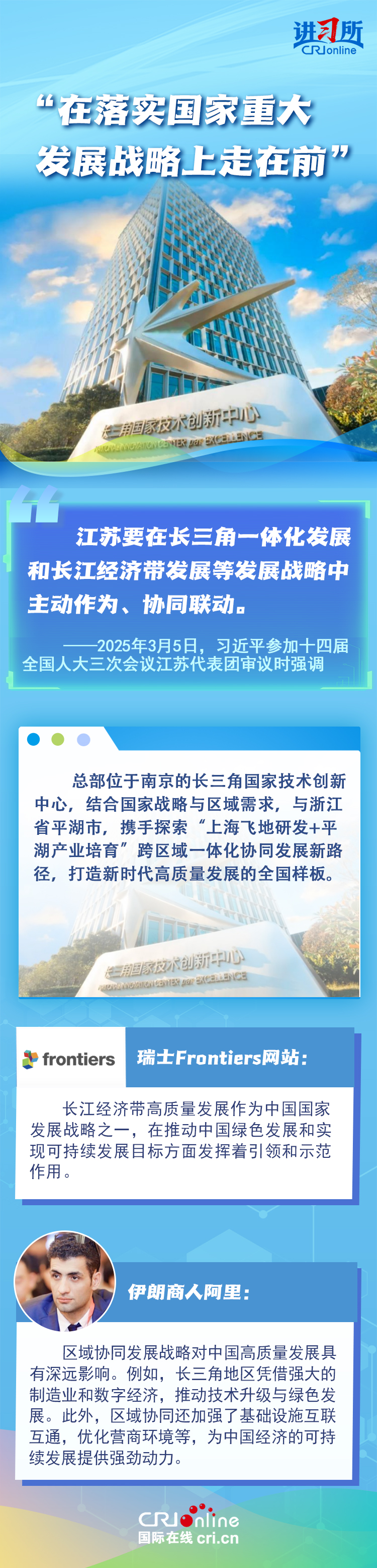 “在推動(dòng)科技創(chuàng)新和產(chǎn)業(yè)創(chuàng)新融合上打頭陣,在推進(jìn)深層次改革和高水平開放上勇爭先,在落實(shí)國家重大發(fā)展戰(zhàn)略上走在前,在促進(jìn)全體人民共同富裕上作示范”……今年全國兩會(huì)上,中共中央總書記、國家主席習(xí)近平在參加江蘇代表團(tuán)審議時(shí),為這個(gè)中國“經(jīng)濟(jì)大省挑大梁”提出高質(zhì)量發(fā)展的著力點(diǎn)。
