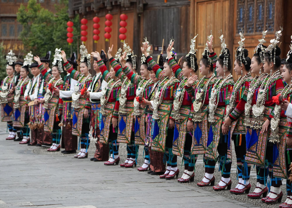 2025年3月14日,村民在肇興侗寨內(nèi)通過手機(jī)直播銷售刺繡作品。侗繡承載著侗族人的信仰與記憶,年輕繡娘的手藝多半來自母親傳承,侗族婦女用一針一線將民族古老的神話傳說、歷史風(fēng)俗記錄在服飾的紋樣里,讓這門手藝在侗鄉(xiāng)世代傳承。2011年,侗族刺繡被列入國家級非物質(zhì)文化遺產(chǎn)名錄。