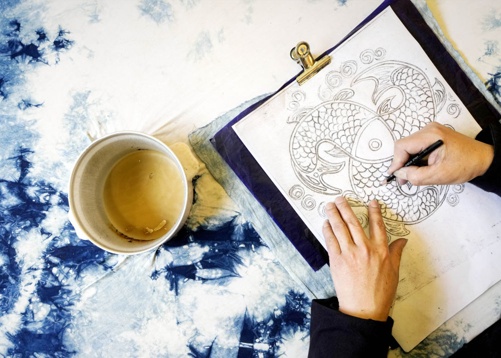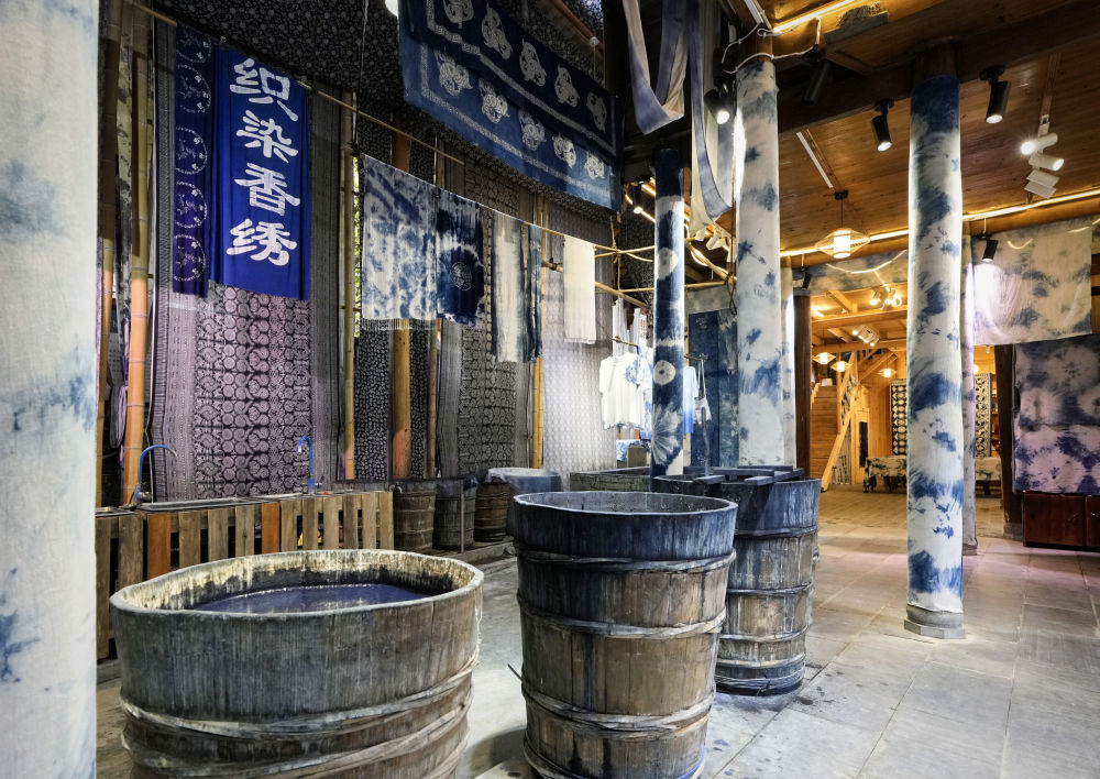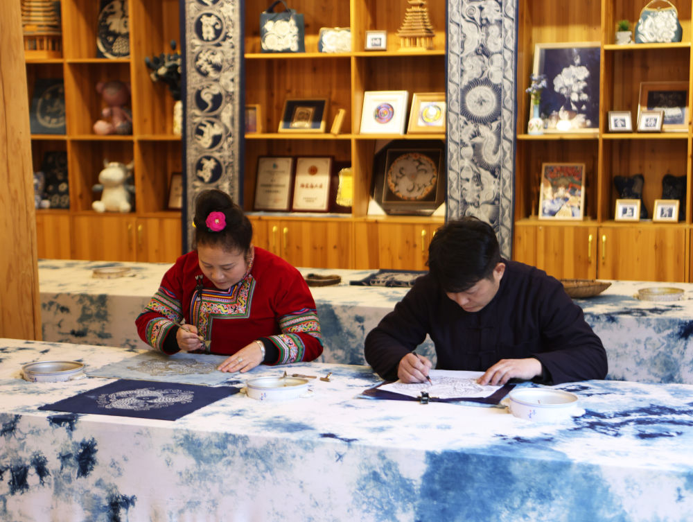 2025年3月14日,村民在肇興侗寨內(nèi)制作蠟染。近年來,當(dāng)?shù)丶哟髮ι贁?shù)民族非遺文創(chuàng)產(chǎn)品的研發(fā)和創(chuàng)新力度,同時(shí)進(jìn)一步加強(qiáng)線上銷售,通過微信、網(wǎng)上直播、網(wǎng)店等方式進(jìn)行帶貨,讓當(dāng)?shù)厝罕娡ㄟ^指尖增收致富。