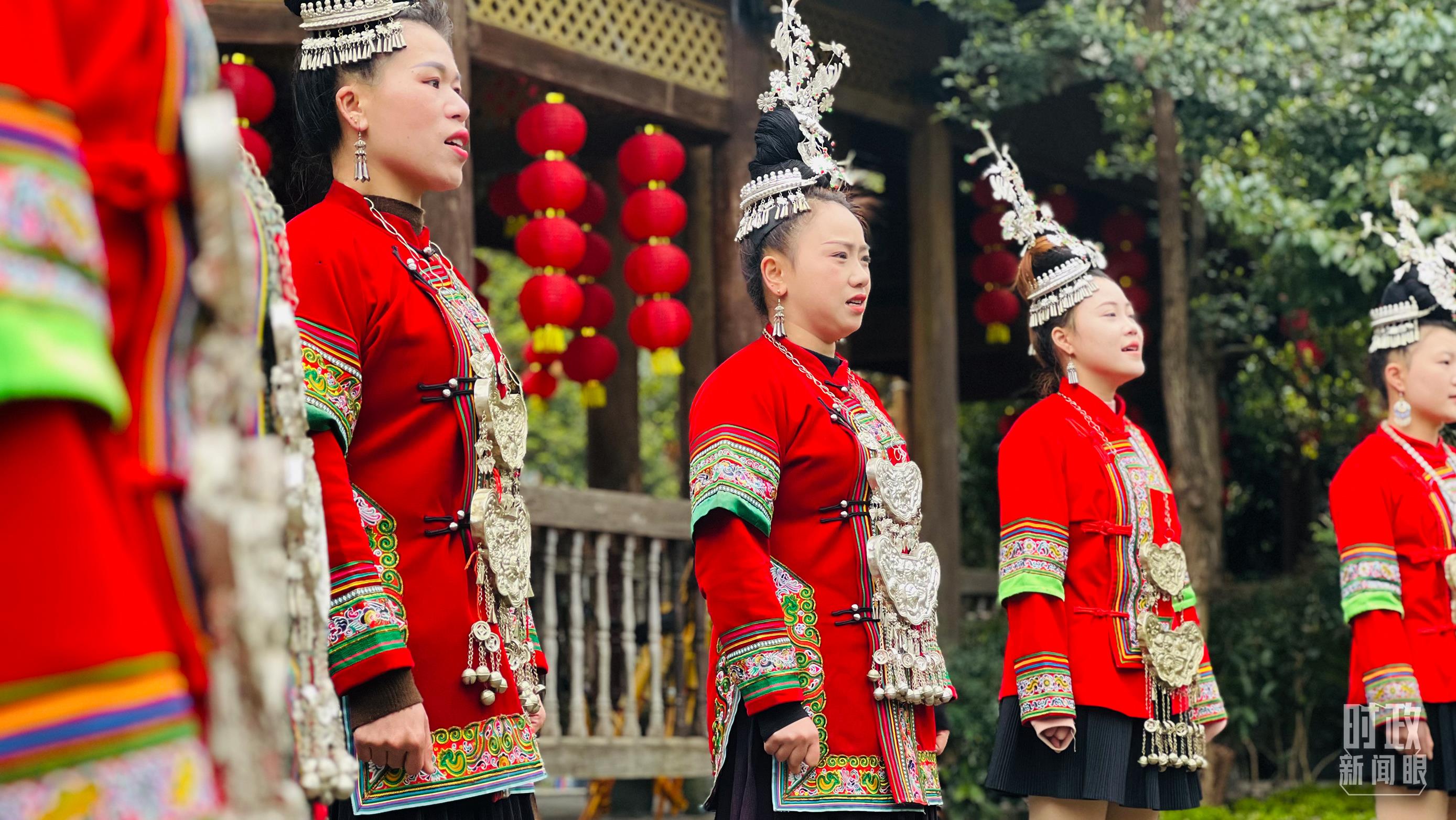 寨門(mén)處,鄉(xiāng)親們身著傳統(tǒng)服飾,唱起侗族大歌,歡迎遠(yuǎn)方的來(lái)客。(總臺(tái)央視記者范凱拍攝)