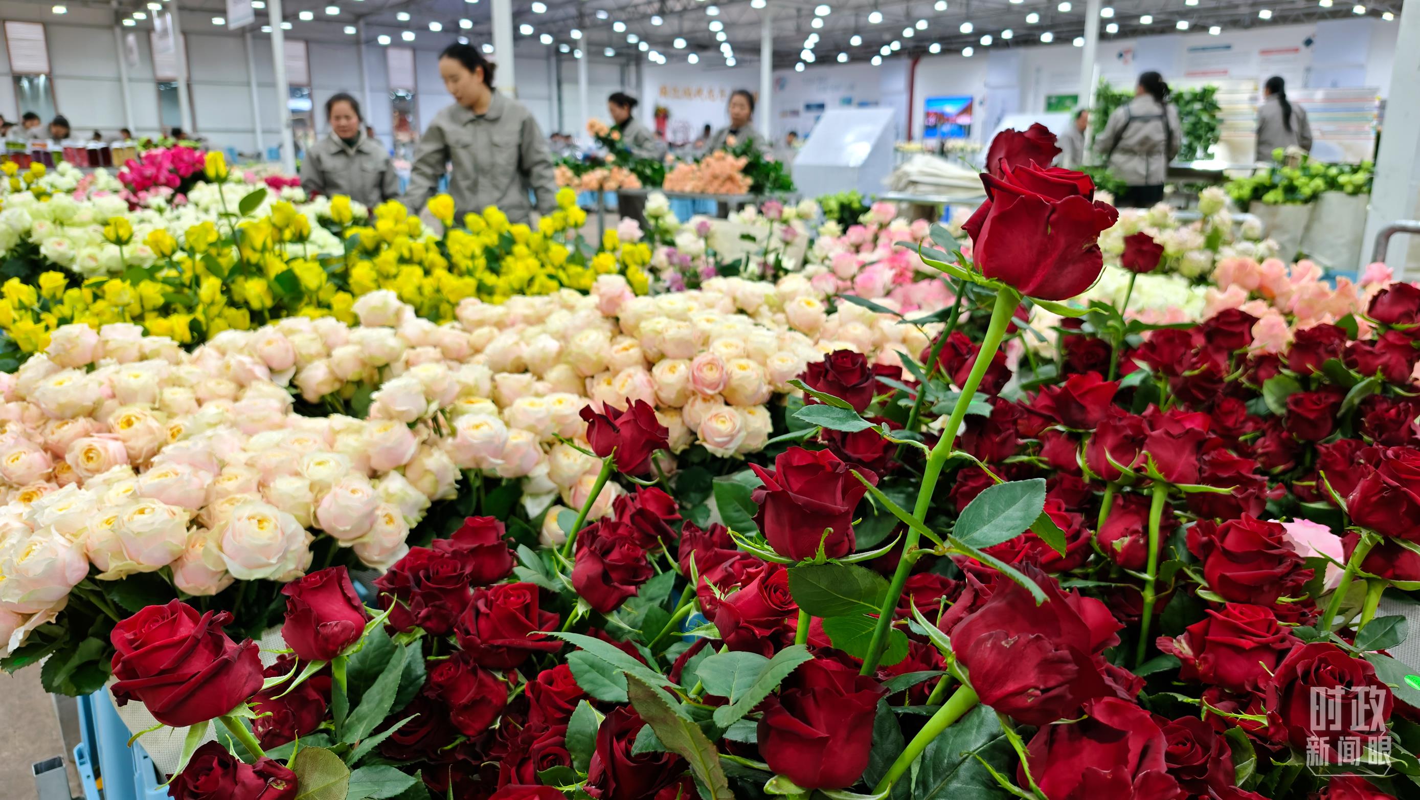 工人正在對(duì)采摘下來(lái)的鮮花進(jìn)行整理、分類。(總臺(tái)央視記者邢彬拍攝)