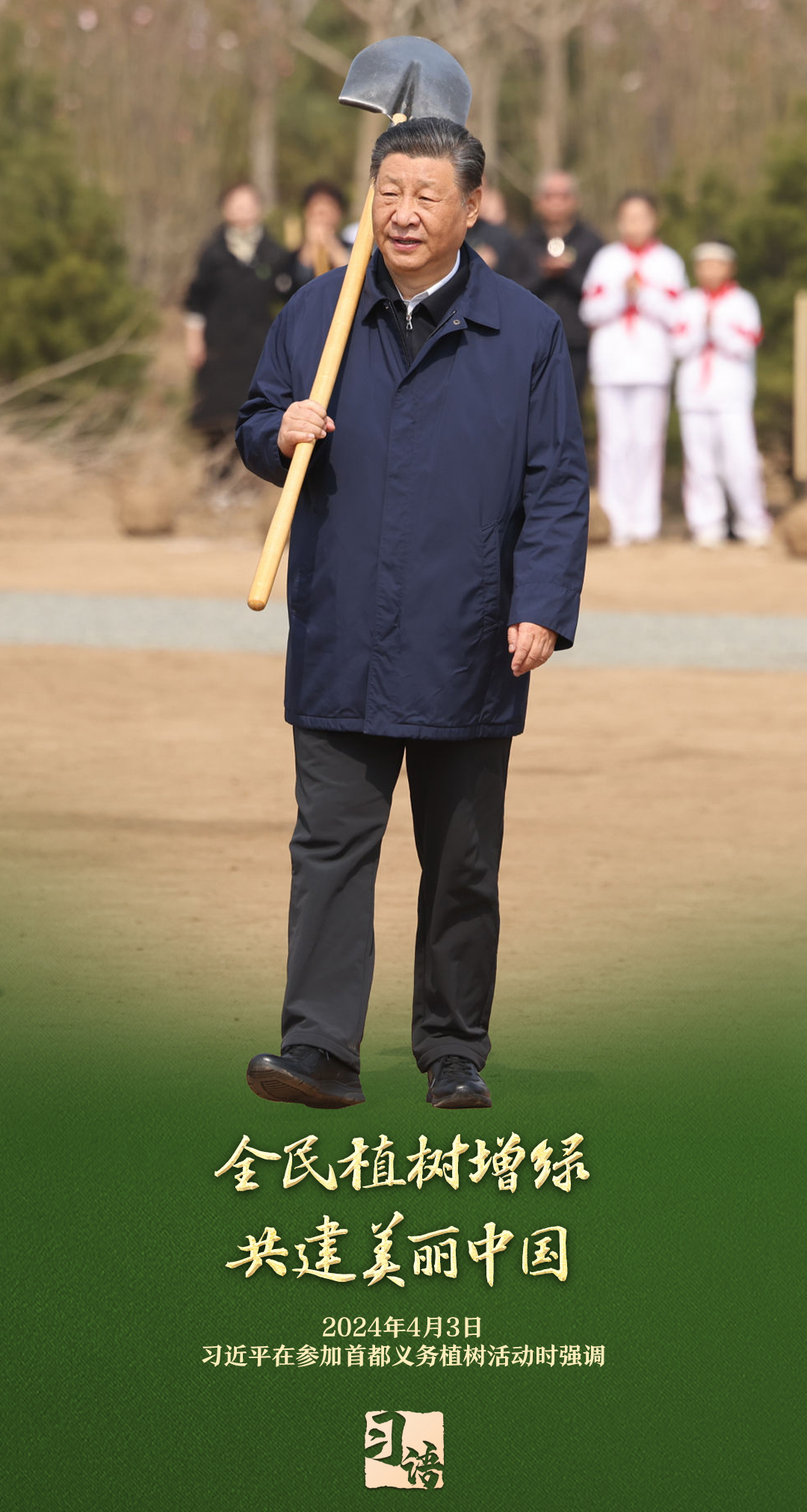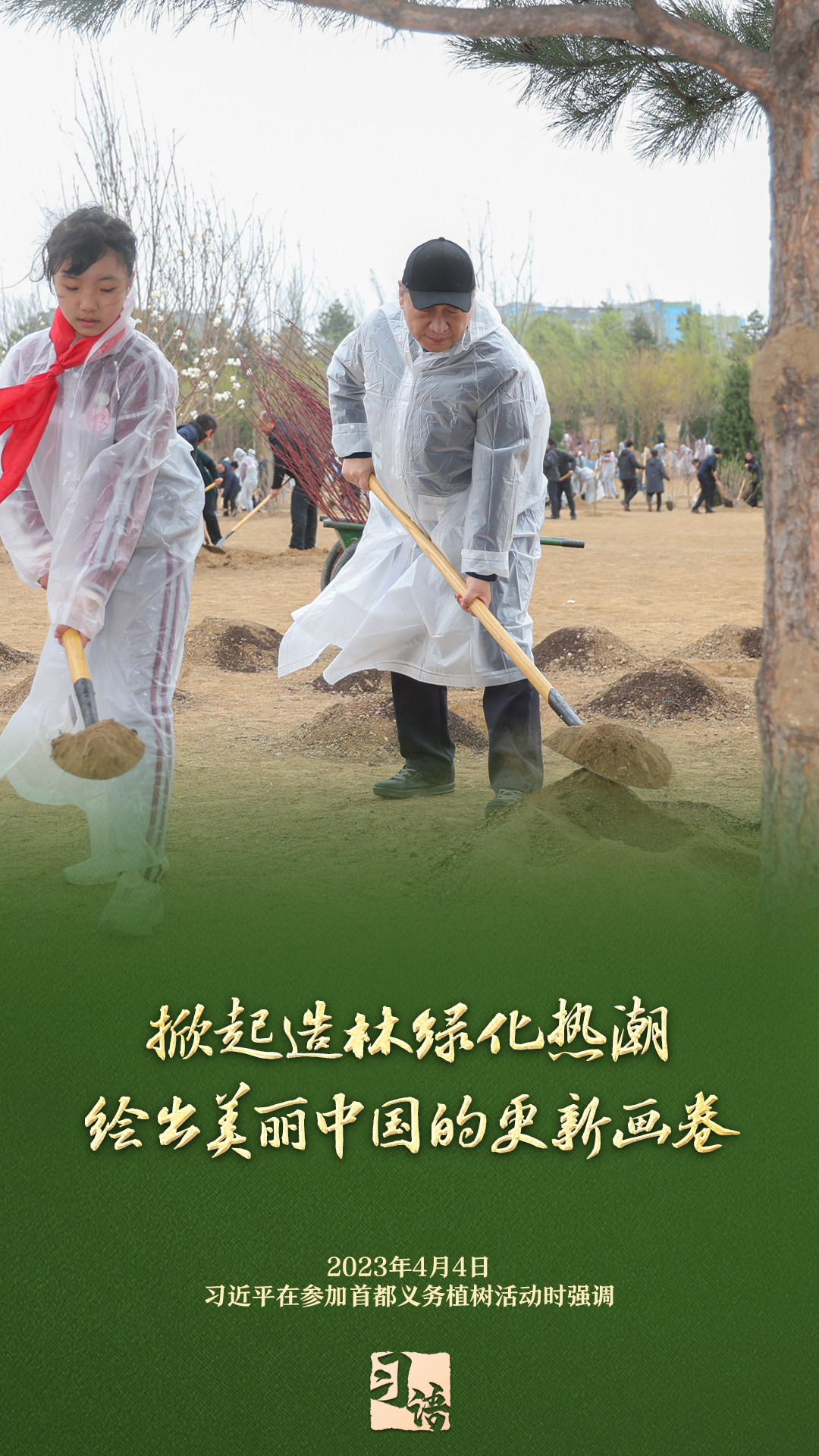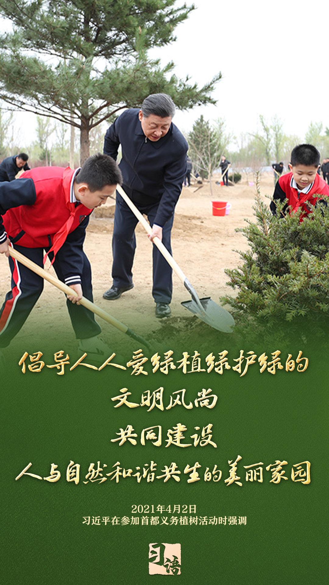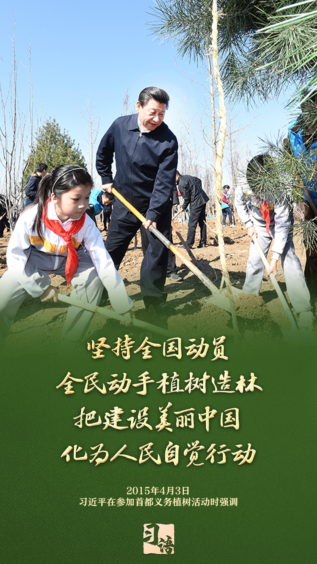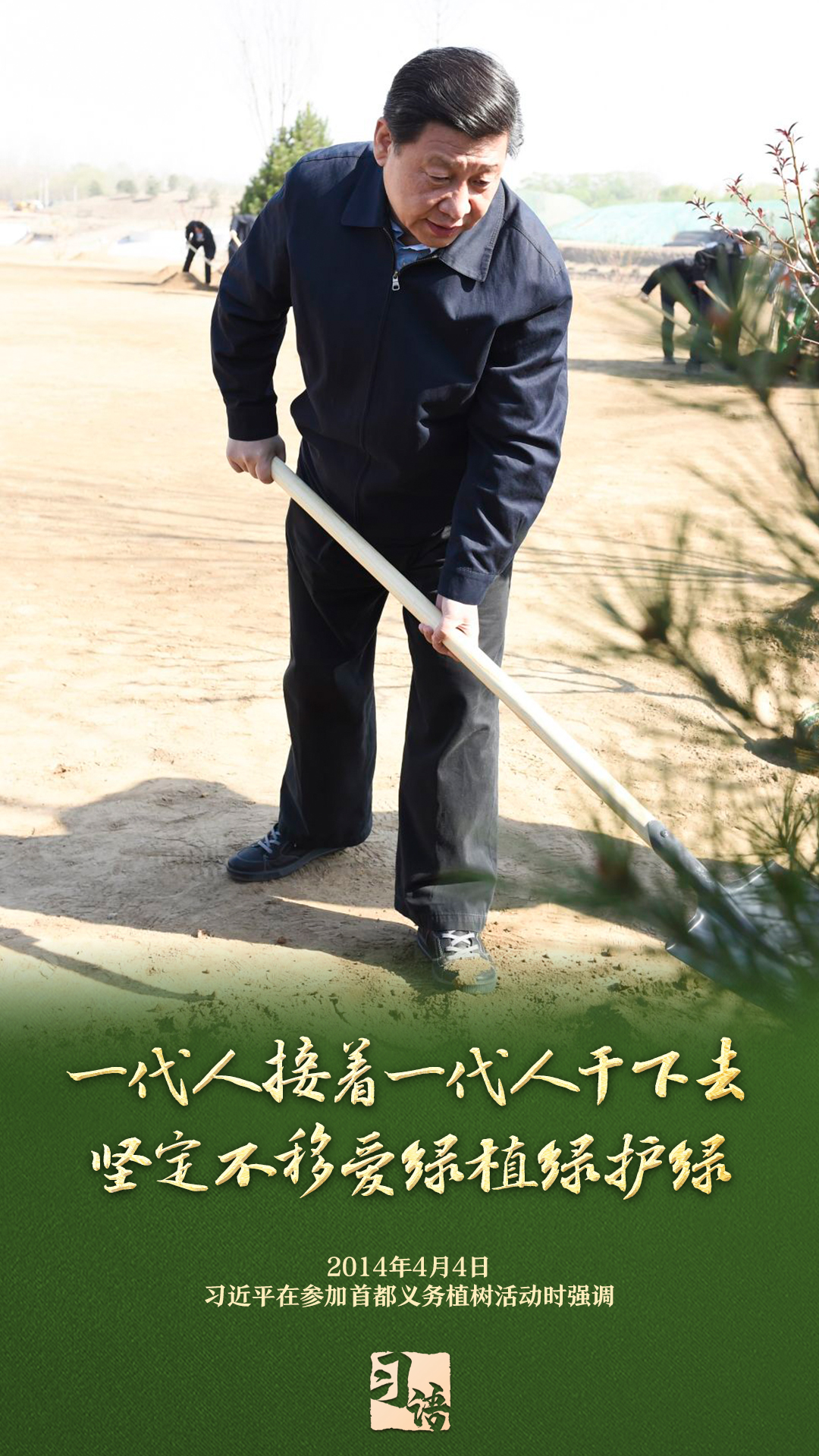 “植樹(shù)造林是一件很有意義的事情,是一項(xiàng)功在當(dāng)代、利在千秋的崇高事業(yè),要一以貫之、持續(xù)做下去。”自2013年以來(lái)的13個(gè)春天里,無(wú)論晴雨,習(xí)近平總書記都會(huì)拿起鐵鍬,與干部群眾一起參加首都義務(wù)植樹(shù)活動(dòng)。鏟土造坑、培土圍堰、提水澆灌,總書記身體力行種下綠色的希望,對(duì)擴(kuò)綠興綠護(hù)綠、建設(shè)美麗中國(guó)提出明確要求。一起學(xué)習(xí)。
