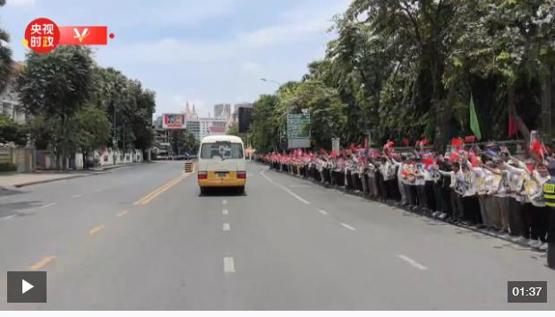 當(dāng)?shù)貢r間4月17日上午,國家主席習(xí)近平抵達(dá)柬埔寨首都金邊??偱_隨團(tuán)時政記者跟隨車隊獨家記錄金邊萬人歡迎盛況。