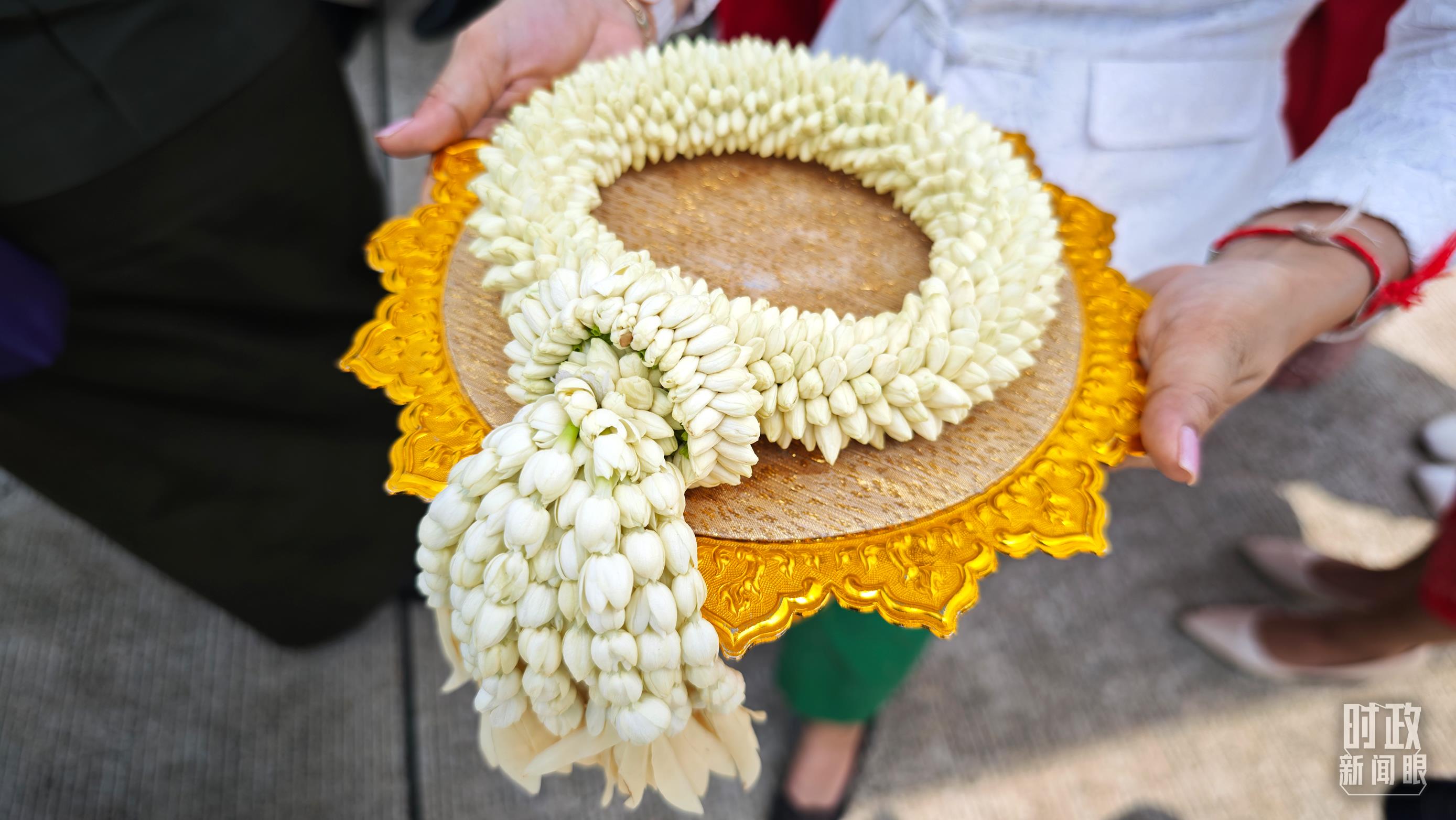 柬埔寨王室珍娜公主向習(xí)主席獻上的茉莉花手環(huán)。(總臺央廣記者潘毅拍攝)
