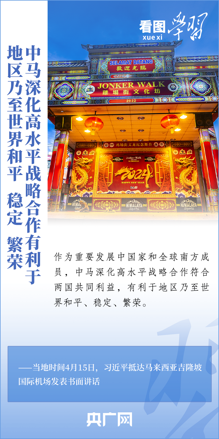 “中國和馬來西亞是好鄰居、好朋友、好伙伴,常來常往、親如一家?!?月15日至17日,國家主席習(xí)近平應(yīng)邀對馬來西亞進行國事訪問。訪問期間,習(xí)主席高度評價中馬關(guān)系,就共同打造高水平戰(zhàn)略性中馬命運共同體,譜寫睦鄰友好、團結(jié)合作新篇章,開啟中馬關(guān)系新的“黃金50年”擘畫藍圖和愿景。一起來學(xué)習(xí)!