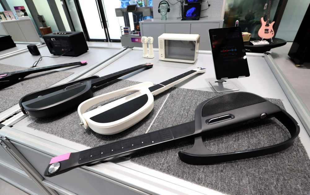 “模速空間”內(nèi)的人工智能產(chǎn)品體驗店展出的智能吉他。新華社記者 方喆 攝