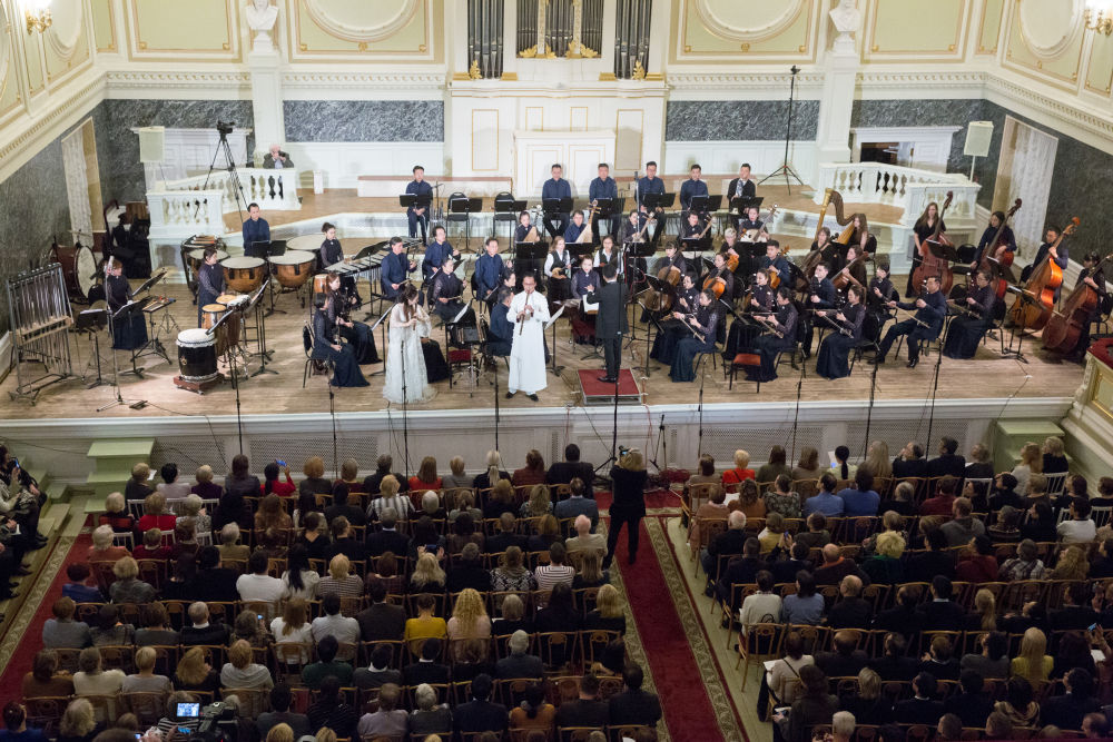 2019年11月13日,在俄羅斯圣彼得堡卡貝拉音樂廳,上海民族樂團與安德烈耶夫國立模范民族樂團的藝術(shù)家共同為觀眾獻上了一場名為《海上生民樂·和平頌》的精彩音樂會,開啟了上海民族樂團2019俄羅斯巡演之旅。