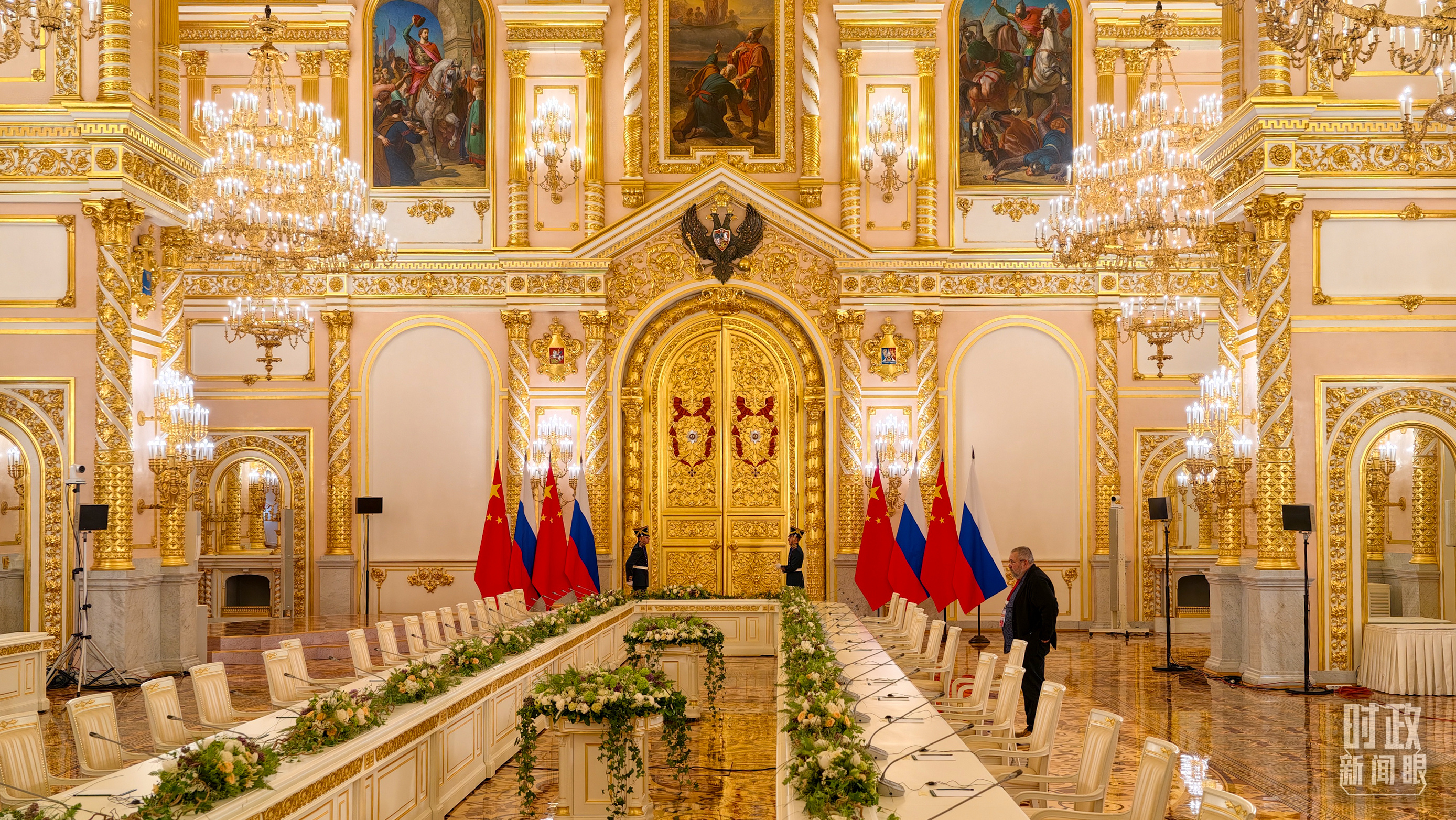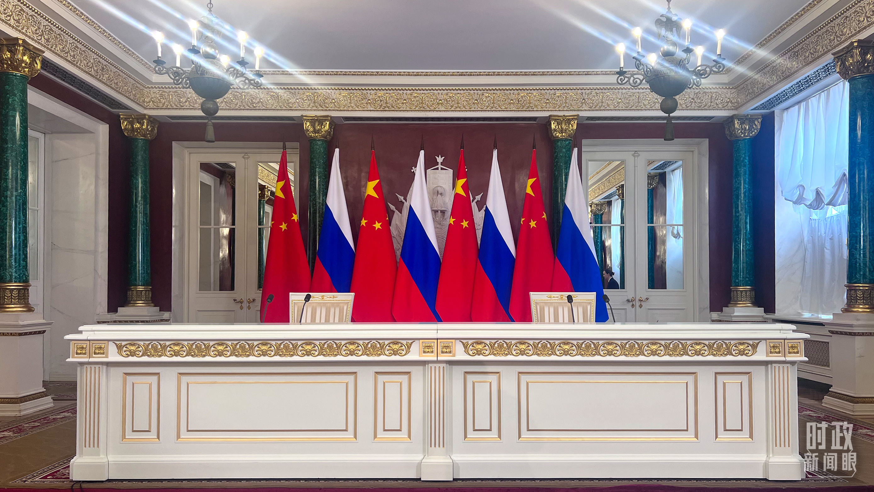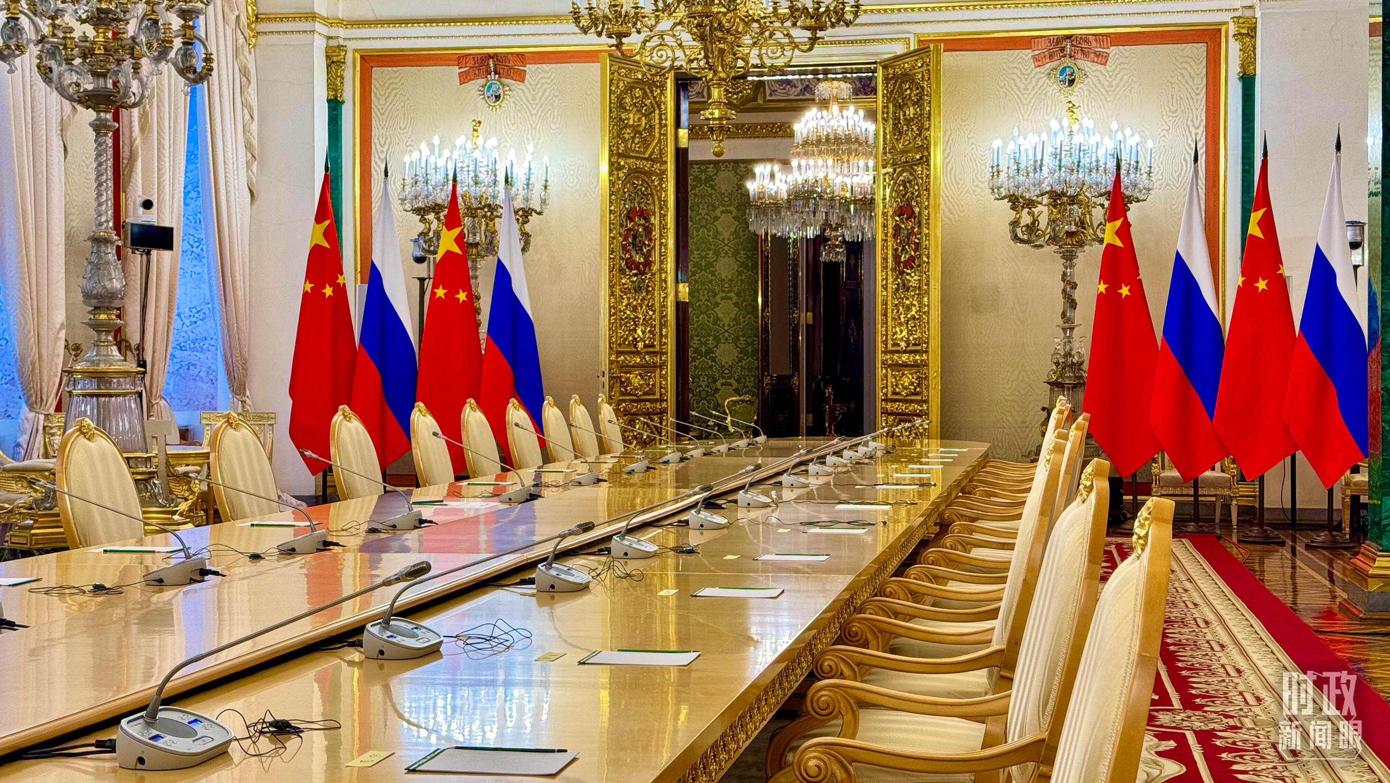 習主席和普京總統舉行大范圍會談的會場。(總臺央視記者趙東辰拍攝)