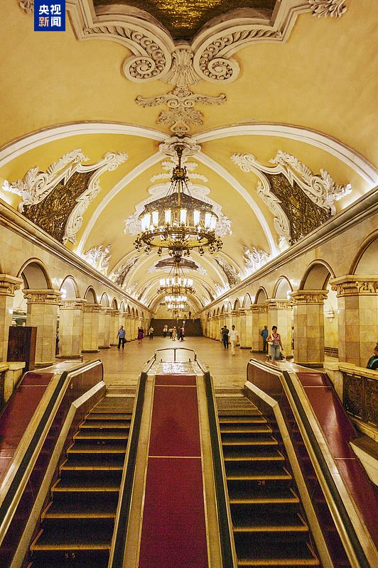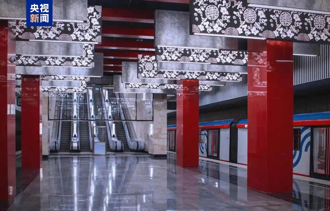△莫斯科地鐵米丘林大街站由中企中標建設(shè),地鐵站有紅色立柱、團壽紋、祥云等中國元素裝飾。