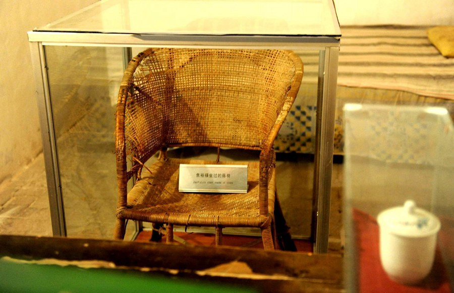 這是在河南省蘭考縣焦裕祿同志紀(jì)念館內(nèi)拍攝的焦裕祿曾用過的藤椅(2014年5月5日攝)。新華社記者 朱祥 攝