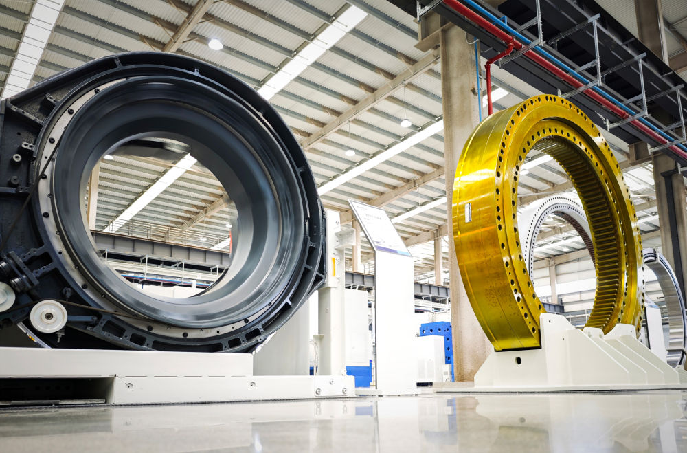 2025年5月19日在洛軸拍攝的醫(yī)療CT機軸承(左)和盾構(gòu)機軸承(右)。