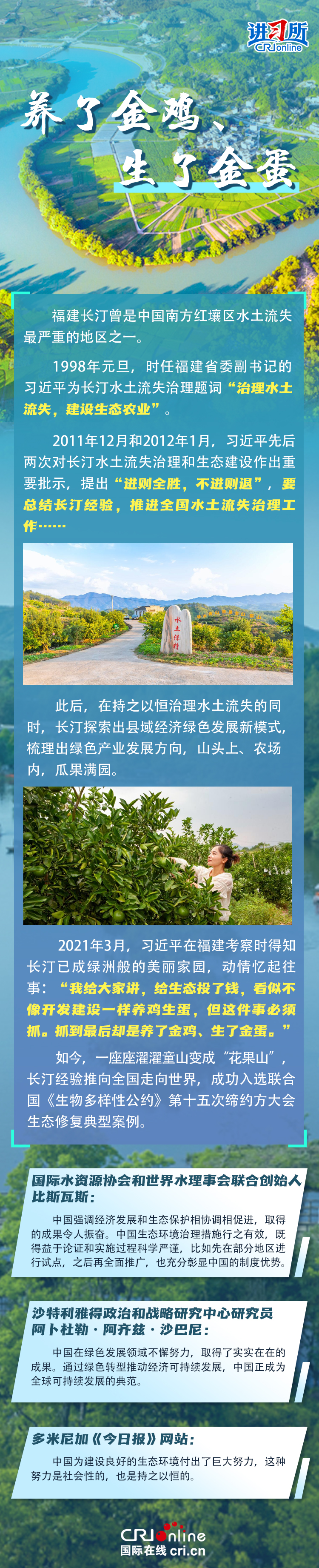 新時(shí)代以來(lái),在習(xí)近平生態(tài)文明思想的科學(xué)指引下,“兩山”理念已深入人心,從“點(diǎn)綠成金”的紅樹(shù)林到一座座“花果山”,再到走向世界的長(zhǎng)汀經(jīng)驗(yàn)……美麗中國(guó)建設(shè)邁出重大步伐,生態(tài)環(huán)境保護(hù)發(fā)生歷史性變化。國(guó)際社會(huì)認(rèn)為,中國(guó)取得廣泛的綠色發(fā)展成就,從根本上源于習(xí)近平生態(tài)文明思想,特別是“兩山”理念的指引。在通過(guò)綠色轉(zhuǎn)型推動(dòng)經(jīng)濟(jì)可持續(xù)發(fā)展方面,中國(guó)正成為全球可持續(xù)發(fā)展的典范。
