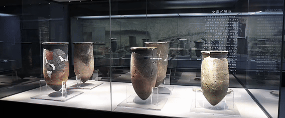 “這是一件出土于安徽蒙城新石器時代尉遲寺遺址的大口陶尊,距今大約4800年?!敝v解員指著一件陶器展品,“它的特別之處是器物上有著刻畫符號,分別是‘日’‘月’‘山’形。抽象的表達(dá)和組合,已經(jīng)超越了簡單的圖畫,使我們看到了漢字的雛形。”