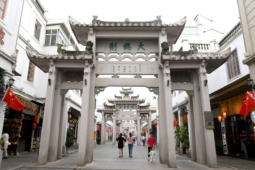 以牌坊街為文化地標的潮州古城至今保持著“外曲內(nèi)方,四橫三縱”的宋代時街區(qū)格局。23座古牌坊連接起51條古街巷,商鋪林立,古色古香。