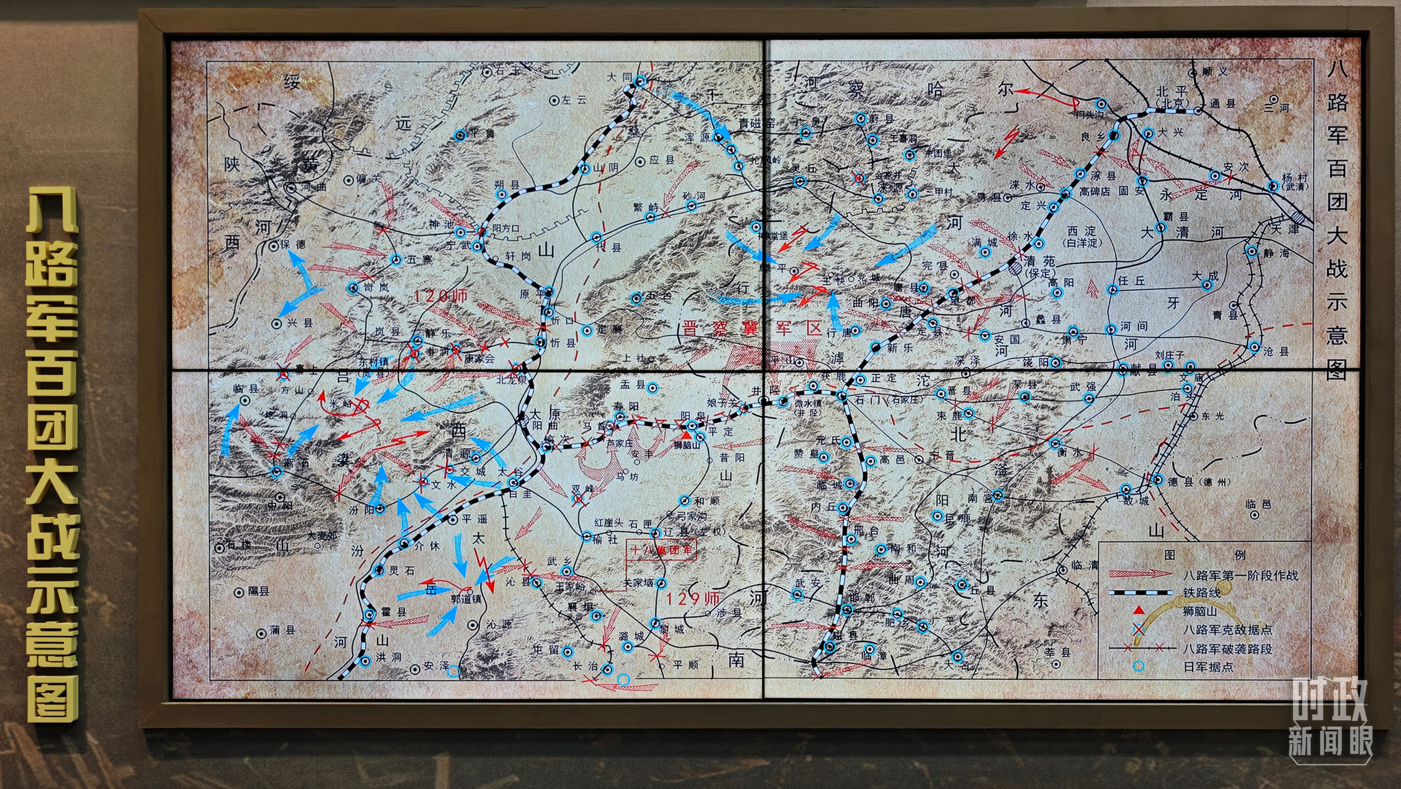 百團(tuán)大戰(zhàn)紀(jì)念館展陳——八路軍百團(tuán)大戰(zhàn)示意圖。(總臺央視記者許永松拍攝)